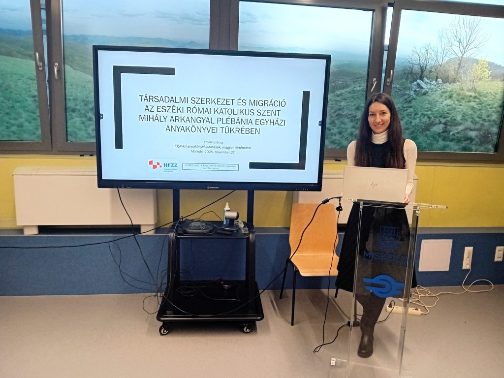 Dr. sc. Eldina Lovaš, znanstvena suradnica, od 26. do 27. studenoga 2025. godine boravila je na Sveučilištu u Miskolcu (Mađarska), gdje je sudjelovala na znanstvenom skupu “Istraživanje matičnih knjiga, mađarska povijest” izloživši temu “Društvena struktura i migracije u svjetlu matičnih knjiga osječke rimokatoličke župe sv. Mihovila Arkanđela”. Istom je prilikom studentima Instituta za povijest održala pozvano gostujuće predavanje na temu “Hrvatske zemlje u ranom novom vijeku: uprava, stanovništvo, društvo”.
